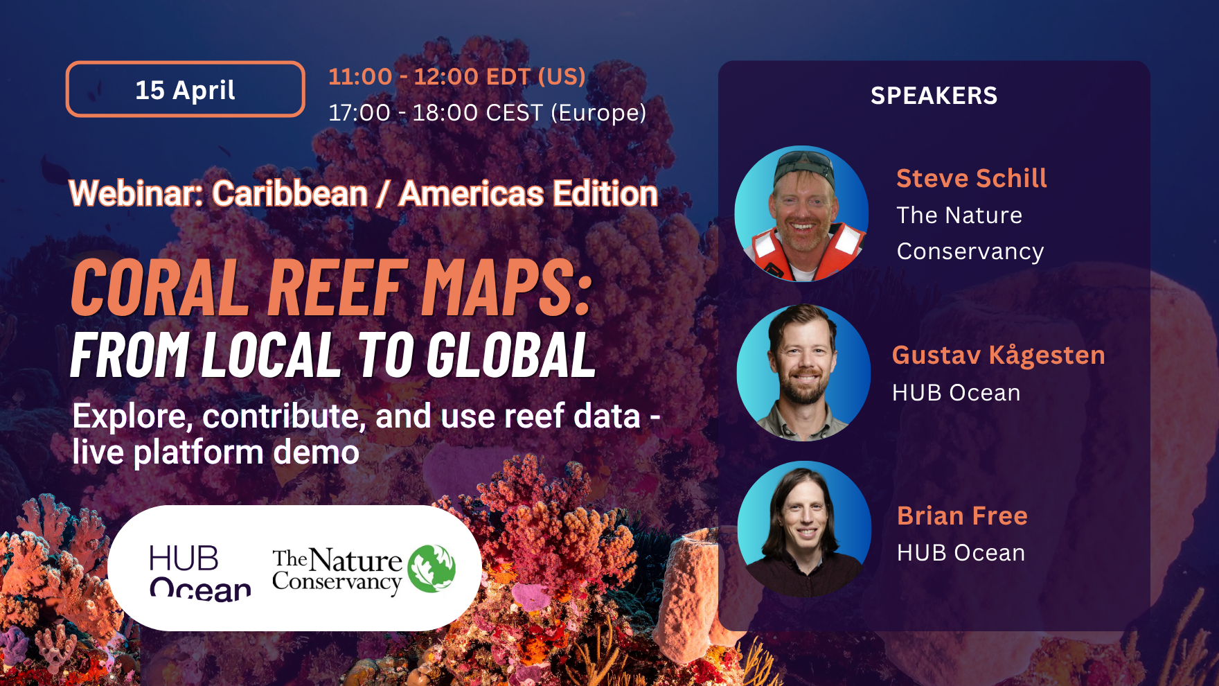 Steve Schill: The Nature Conservancy; Gustav Kågesten, Science Director, HUB Oceanand Brian Free, Geospatial Data Analyst, HUB Ocean